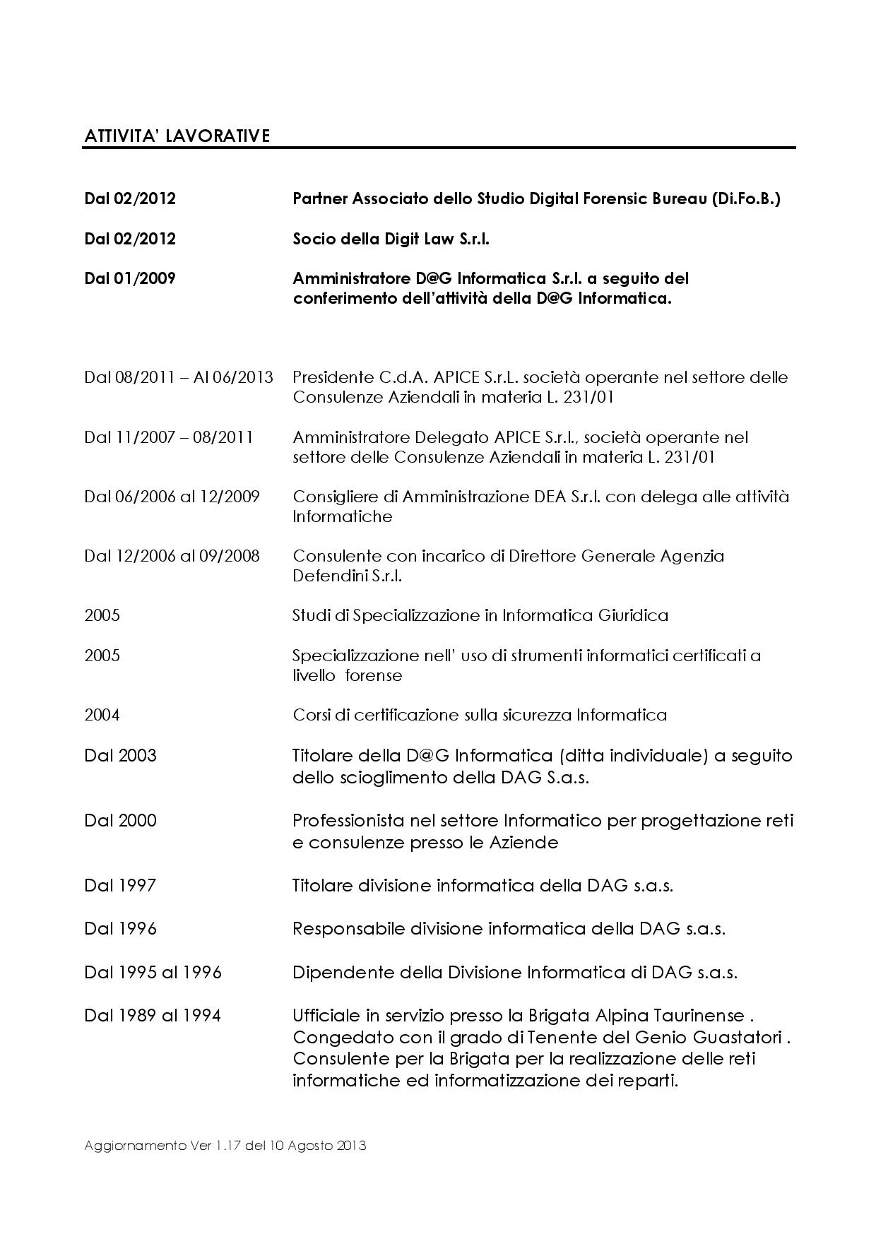 In basso il Falso Curriculum dell’Impostore Giuseppe Dezzani. A causa delle sue consulenze e perizie molta gente è finita in prigione.